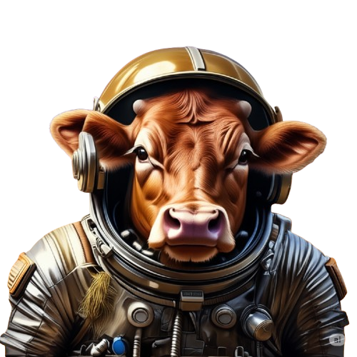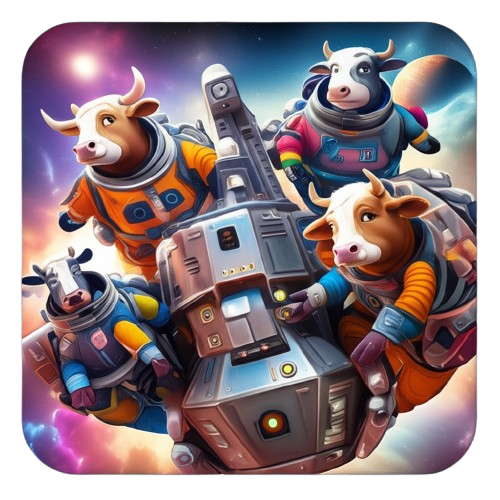 Genetically engineered “Astro-Moos” grazed on asteroid hay, producing cosmic-grade milk as they floated through the galaxy in advanced space suits, their moos echoing across the stars.